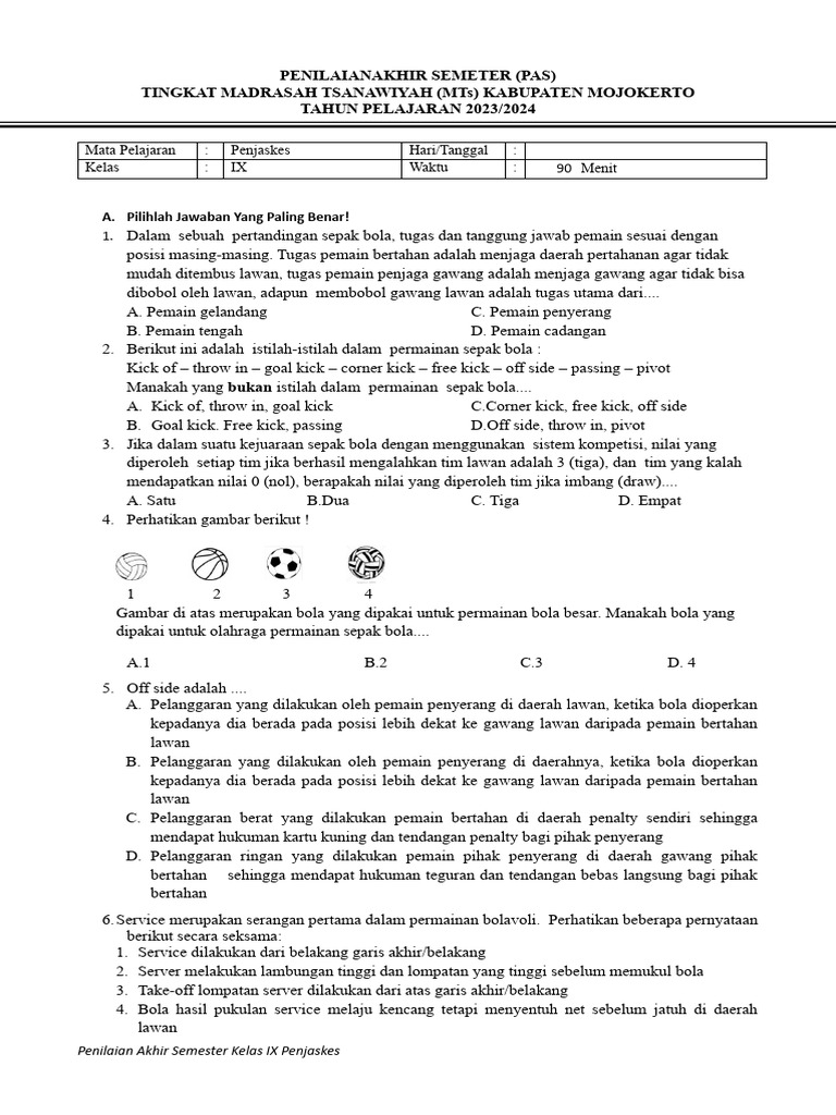 Artikel ini hadir untuk membantu siswa kelas 9 dalam mempersiapkan diri menghadapi ujian Penjaskes semester 2, khususnya pada bagian soal esai. Kami akan menyajikan beberapa contoh soal esai yang mencakup berbagai topik penting dalam kurikulum, lengkap dengan pembahasan mendalam dan jawaban yang komprehensif. Dengan pemahaman yang baik terhadap contoh soal ini, diharapkan siswa dapat lebih percaya diri dan meraih hasil terbaik.