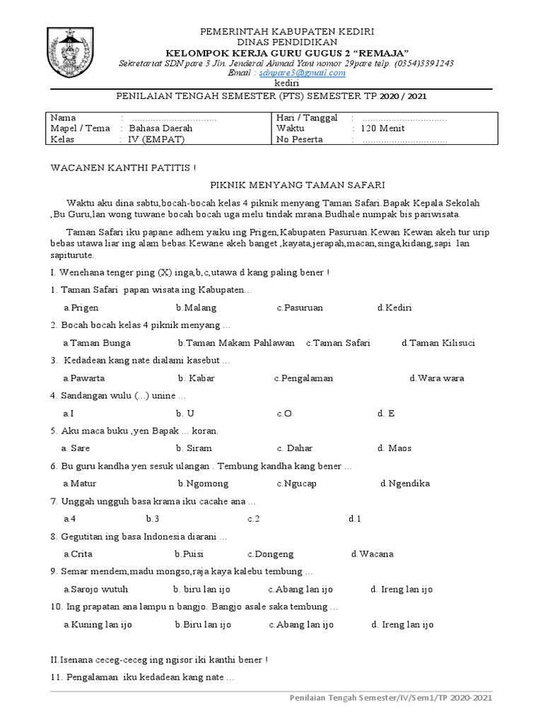 Bahasa daerah, lebih dari sekadar alat komunikasi, adalah denyut nadi budaya, warisan leluhur yang harus dijaga dan dilestarikan. Bagi siswa kelas 4 Sekolah Dasar, pembelajaran bahasa daerah menjadi gerbang awal untuk mengenal identitas diri dan kekayaan Nusantara yang luar biasa. Ujian atau soal bahasa daerah di tingkat ini bukan hanya menguji kemampuan menghafal kosakata atau tata bahasa, tetapi juga menanamkan rasa cinta dan bangga terhadap bahasa ibu. Artikel ini akan mengupas tuntas berbagai jenis soal bahasa daerah yang kerap ditemui di kelas 4 SD, serta memberikan strategi jitu agar para siswa dapat menaklukkan setiap tantangan dengan percaya diri.