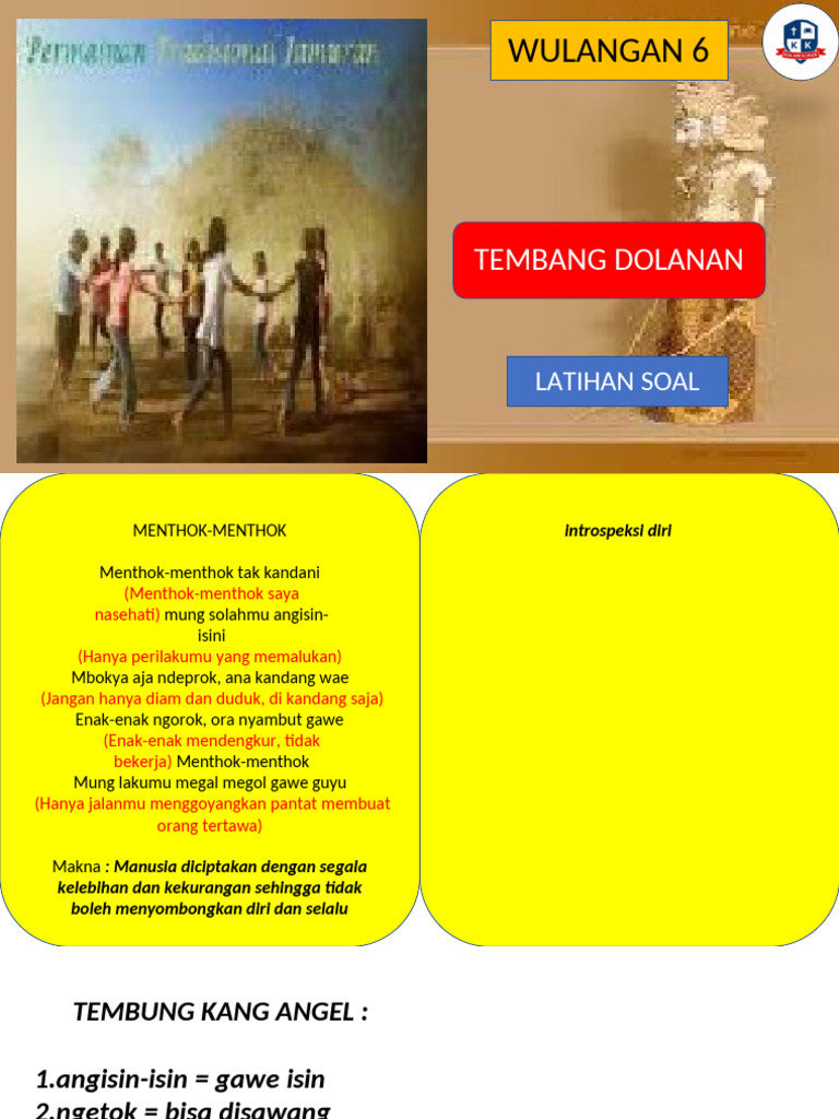 - Pemahaman Kontekstual: Lirik tembang dolanan seringkali berkaitan dengan aktivitas sehari-hari, alam, atau cerita, sehingga siswa dapat memahami makna bahasa dalam konteks yang nyata.